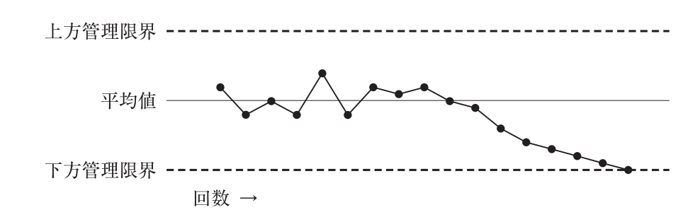 - 4.管理試料の測定値が3点連続して上昇傾向を示した場合をシフト現象という。